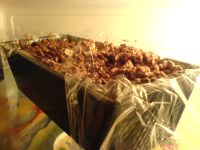 Vierter Schritt: Die Masse in einer mit Küchenfolie ausgeschlagenen Kastenform in den Kühlschrank stellen