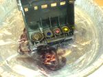 Nach einem Wasserwechsel den Druckkopf wieder für ein paar Minuten einweichen lassen. Es lösen sich noch verbleibende kleinere Verkrustungen – dann feste ausschütteln und anschließend sorgfältig trocknen lassen – immerhin befindet sich ein sehr enger Zwischenraum hinter der Rück-Platine, in dem sich keinerlei Wasser mehr befinden darf!