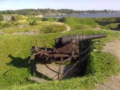 Nach einem Bummel über den kleinen Markt am Hafen setzen wir mit der Fähre auf die Festungsinsel Suomenlinna („Festung der Finnen“) über. Dort befindet sich das Naherholungsgebiet der Stadt mit einigen Museen, Restaurants und den Überresten der Befestigungsanlagen. Dicke stählerne Kanonen zeigen noch immer in Richtung Feind (je nach Zeit Russen, Franzosen oder Engländer) und unter weiten Teilen der Mauern kann man sich durch niedrige Tunnel fortbewegen. Das weckt Erinnerungen an die alten Fünf Freunde Hörspielkassetten, in denen ja regelmäßig Schmuggler und andere Halunken durch alte Tunnel verfolgt werden. Sehr abenteuerlich auf jeden Fall. 🙂